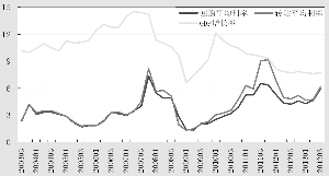 一是自20世纪90年代末开始我国经济进入一个平稳的增长期,GDP增长率逐步提高,在2007年第二季度达到峰值14.5%,随后受次贷金融危机影响GDP增长率逐步回落至2009年第一季度的6.6%。同期票据利率也完成了一个周期的运转,波峰大约在2007年年末,回购平均利率达到7.30%,转贴平均利率达到8.14%,波谷是在2009年第二季度,回购和转贴平均利率均回落至1.4%左右。
