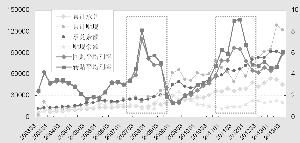 相反,虽然贴现业务近年也快速增长,2012年累计贴现量为31.6万亿元,贴现余额2万亿元,分别比2000年同期增长了48倍和12倍,但贴现业务量的变化与票据利率的走势明显呈现反向关系,特别是在2007年年末和2011年年中时,伴随着贴现业务量的下行,票据利率不断飙升。