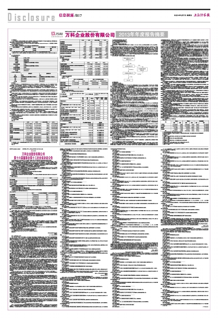 证券代码:000002、200002 证券简称:万科A、万科B 公告编号:〈万〉2014-011