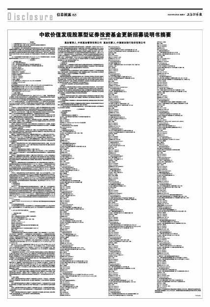 基金管理人:中欧基金管理有限公司 基金托管人:中国建设银行股份有限公司