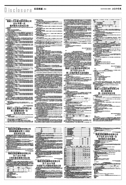 1、福建三元达通讯股份有限公司《2014年第一次临时股东大会决议》;