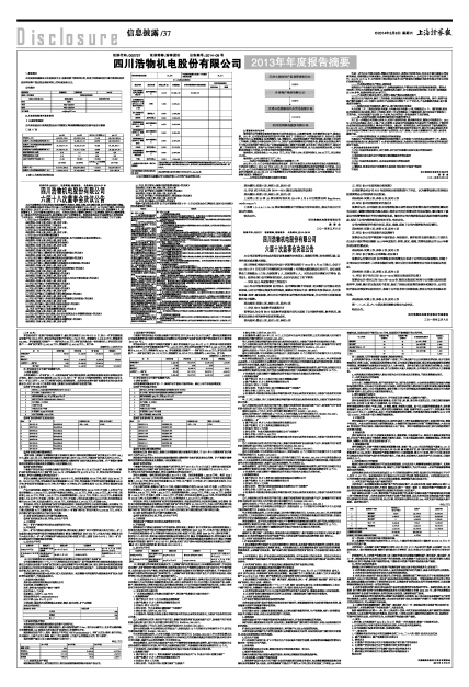 四川浩物机电股份有限公司六届十次监事会通知于2014年2月24日发出,会议于2014年3月7日在天津市空港经济区中环西路1号浩物大厦四楼会议室召开。会议由监事会主席俞敏女士主持,应到监事5人,实到监事5人。本次会议的召集和召开符合《公司法》、《证券法》和《公司章程》的规定,会议审议通过了如下事项: