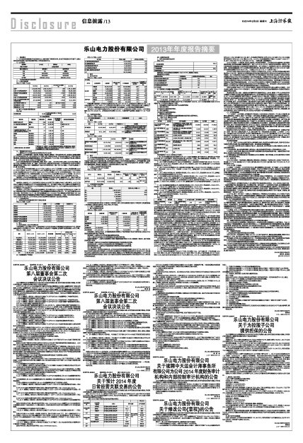 具体内容详见公司在上海证券交易所网站(http://www.sse.com.cn)及《中国证券报》、《上海证券报》、《证券时报》和《证券日报》披露的《乐山电力股份有限公司关于预计2014年度日常经营关联交易的公告》。