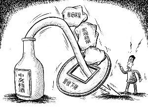 在白酒业深度调整的2013年,酒业名门陷入了高处不胜寒的困境。据刚公布的年报,沱牌舍得销售同比下滑24.15%,净利下滑97%,库存量同比增长71.81%,销售费用同比增长56.67%。今年会如何,就看他们如何改变战略思维了。漫画 刘道伟