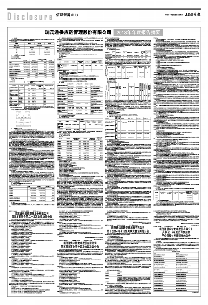 证券代码:600180 证券简称:瑞茂通 编号:临2014-013