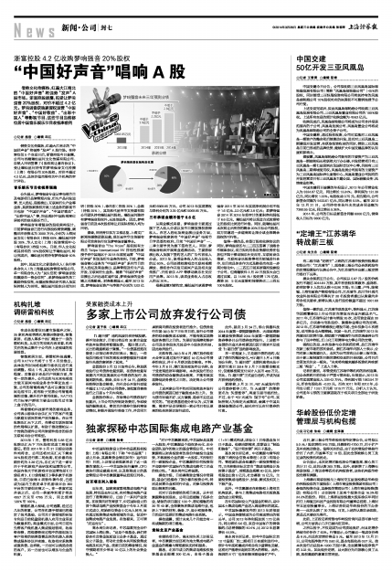 借势文化传媒热,红遍大江南北的“中国好声音”将强势“发声”A股市场。浙富控股披露,拟受让梦响强音20%股权,对价不超过4.2亿元。梦响强音获独家授权运营“中国好声音”、“中国好歌曲”、“出彩中国人”等影视节目,这些节目当前都位居中国音乐娱乐节目收视率前列