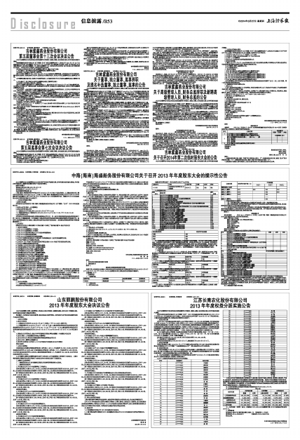 中海(海南)海盛船务股份有限公司关于召开2013年年度股东大会的提示性公告