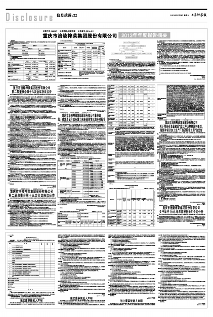 证券代码:002507 证券简称:涪陵榨菜 公告编号:2014-0013