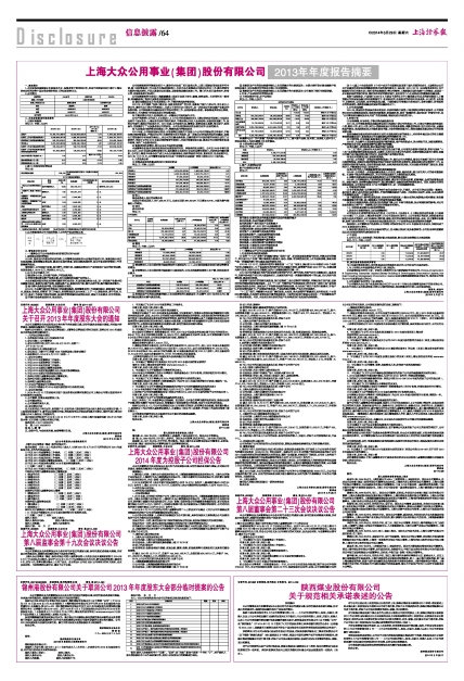 上海大众公用事业(集团)股份有限公司第八届监事会第十九次会议会议通知和材料于2014年3月17日以送达方式发出。会议于2014年3月27日以现场会议方式召开。参与表决的监事人数应为3名,实为3名,监事长曹永勤女士主持了会议。会议符合《公司法》及《公司章程》的有关规定,会议合法有效。与会监事经认真审议,通过了以下议案: