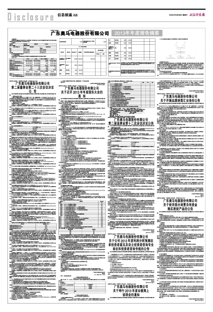 根据《广东奥马电器股份有限公司章程》的相关规定,公司第二届董事会第二十三次会议于2014年3月27日召开,本次会议审议通过了《关于公司召开2013年年度股东大会的议案》,公司2013年年度股东大会定于2014年4月18日在公司一楼会议室召开,现将本次会议有关事项通知如下: