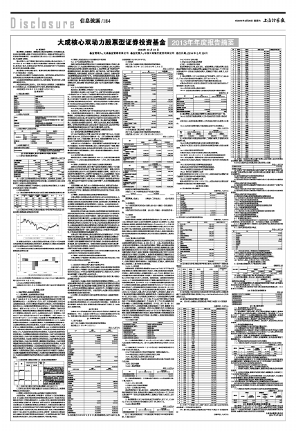 本托管人依法对大成基金管理有限公司编制和披露的大成核心双动力股票型证券投资基金2013年年度报告中财务指标、净值表现、利润分配情况、财务会计报告、投资组合报告等内容进行了核查,以上内容真实、准确和完整。