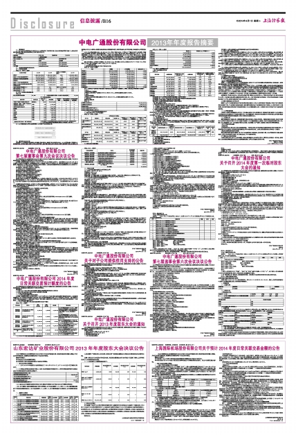 | 1 | 中电广通股份有限公司2013年度利润分配预案 | 1.00元 | 1股 | 2股 | 3股 |