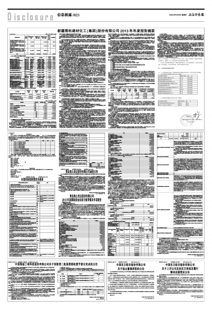 新疆青松建材化工(集团)股份有限公司2013年年度报告摘要