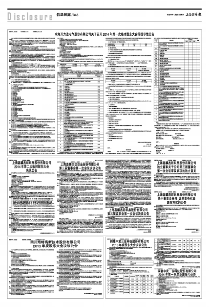珠海万力达电气股份有限公司关于召开2014年第一次临时股东大会的提示性公告