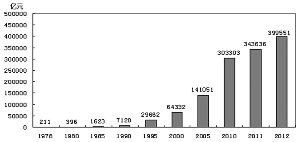 据国家统计局统计,2012年,城镇居民人均可支配收入24565元,比1978年增长71倍,年均增长13.4%,扣除价格因素,年均增长7.4%;农村居民人均纯收入7917元,增长58倍,年均增长12.8%,扣除价格因素,年均增长7.5%。城乡居民拥有的财富显著增加。2012年末,城乡居民人民币储蓄存款余额39.96万亿元,比1978年末增长1896倍,年均增长24.9%。股票、债券等金融资产规模不断扩大。城镇居民拥有的财产性收入从无到有,2012年占人均全部年收入比重上升到2.6%。