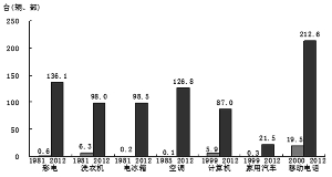 2012年末,城镇居民家庭平均每百户移动电话、计算机和家用汽车拥有量分别为212.6部、87.0台和21.5辆,分别比2000年末增加193.1部、77.3台和21.0辆。城乡居民消费结构加快转型升级,正逐步由温饱型消费向享乐型和发展型转变,住房、家用轿车、旅游、文化娱乐、医疗保健、交通通讯等消费热点持续升温,居民生活条件和居住环境不断改善,生活水平和质量明显提高。