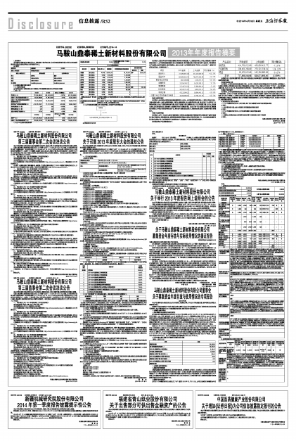 证券代码:002352 证券简称:鼎泰新材 公告编号:2014-14