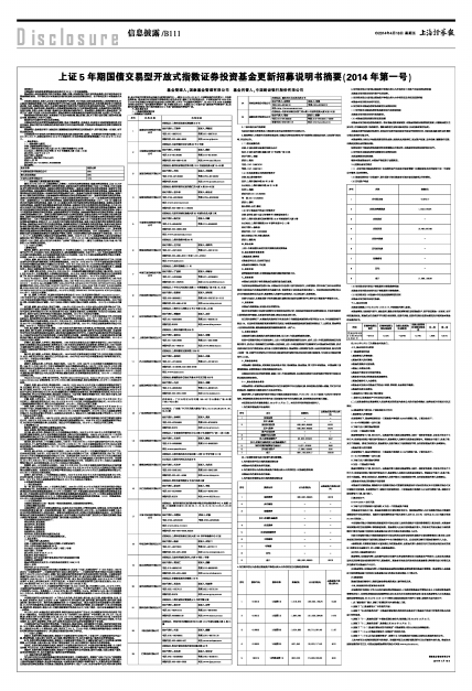 上证5年期国债交易型开放式指数证券投资基金更新招募说明书摘要(2014年第一号)