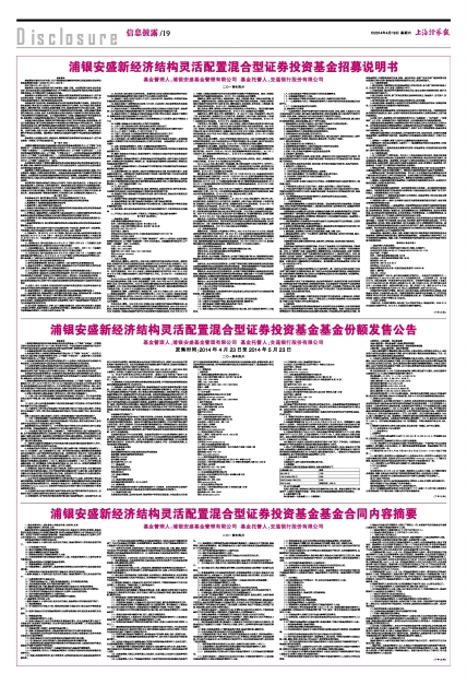 5、浦银安盛新经济结构灵活配置混合型证券投资基金(以下简称“本基金”)基金份额将自2014年4月23日至2014年5月23日通过场内方式和场外方式向社会公开发售。场外发售渠道为本公司的直销中心、电子直销和场外代销机构的代销网点(周六、周日电子直销和部分代销机构网点照常办理业务,具体时间安排详见本公告正文);场内发售渠道为通过上海证券交易所交易系统办理基金销售业务的上海证券交易所会员单位。