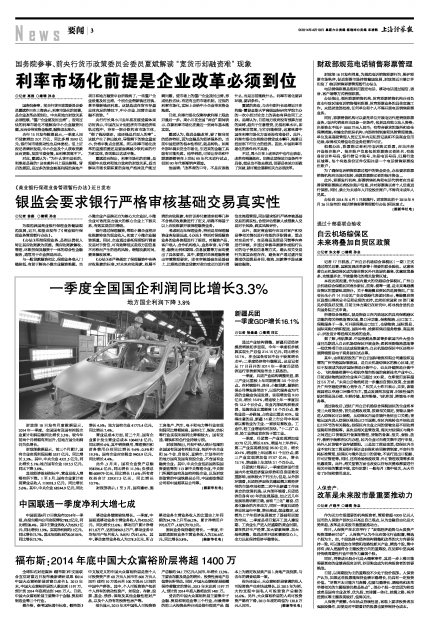 一季度全国国企利润同比增长3.3%