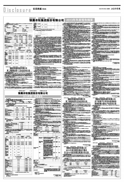 雏鹰农牧集团股份有限公司2013年年度报告摘要