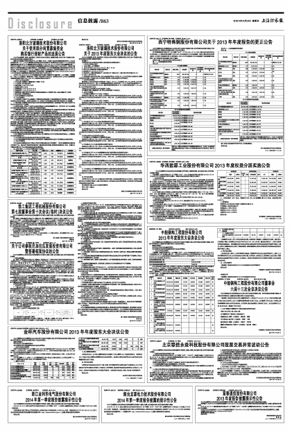 西宁特殊钢股份有限公司关于2013年年度报告的更正公告