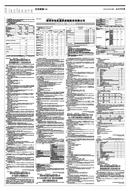股票简称:怡亚通 股票代码:002183 编号:2014-045