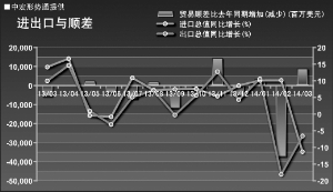 | 贸易顺差比去年同期增加(减少) | 百万美元 | -6144 | -220 | 2356 | -4381 | -7515 | 1861 | -12366 | -1025 | 14214 | -5697 | 3010 | -37840 | 8667 |