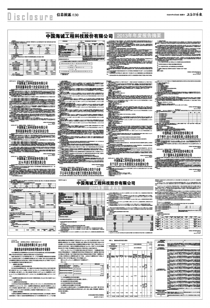 证券代码:002116 证券简称:中国海诚 公告编号:2014—019