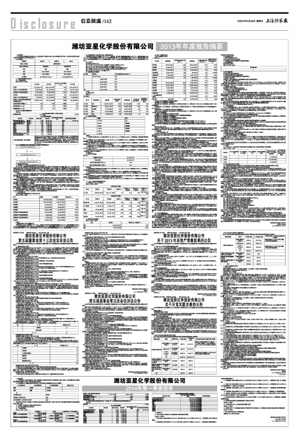 (7)营业收入及营业成本,较去年同期降低,主要原因是:子公司潍坊亚星湖石化工有限公司的六万吨生产装置因2013年底的火灾事故停产,目前正在恢复重建中。