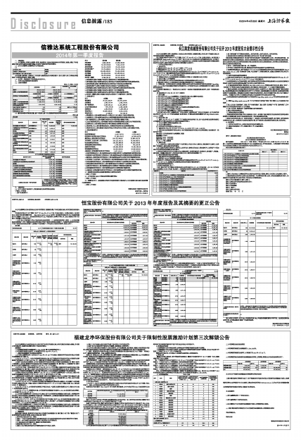恒宝股份有限公司关于2013年年度报告及其摘要的更正公告