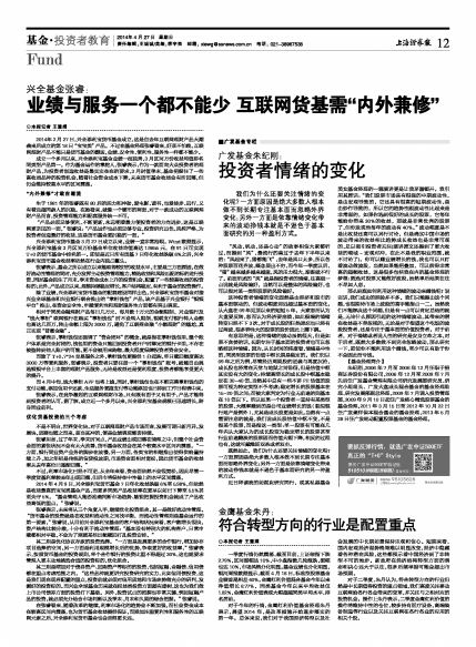其三则是增加对于债券资产、回购资产等标的的投资,包括短融、金融债、信用债都在重点考虑范围之内。“这些品种就更讲究投资研究的实力,比如信用债投资,这是我们现在现券配置的重点,投资前就必须对信用质地和市场走势做充分的研判,发掘好的投资标的。而兴业全球基金历来就在权益类投资方面颇有建树,这也为我们做上市公司债券方面的投资打下基础。另外,投资试点的把握也非常关键,例如短融产品的投资,就必须充分结合市场判断以及季末、月末和久期的综合把握。”张睿说。
