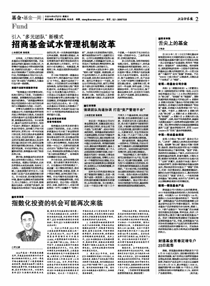 近年来,人才流失已经成为众多基金公司普遍面临的问题。尤其是在去年新《基金法》实施之后,大资管时代给基金公司带来更多的挑战。在新的历史机遇下,一些中小基金公司纷纷展开了灵活机动的创新行动,而老牌基金公司也不甘人后,积极尝试新的探索。近日,招商基金试水“多元团队”的新模式,为基金行业开辟一条新路。