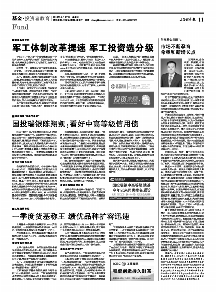 Wind数据显示,截至4月25日,富国军工A折价率为12.36%,对应的富国军工A的隐含收益率约为6.85%,已经高于当前市场10年期AA+企业债6.82%的收益率水平,且没有信用违约的风险。