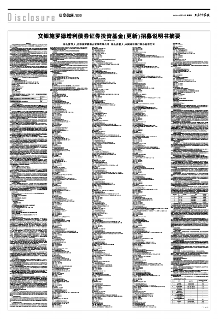 交银施罗德增利债券证券投资基金(更新)招募说明书摘要