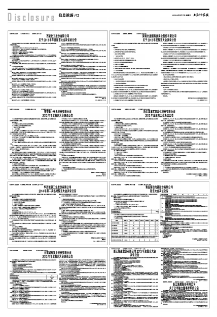 1、会议通知:公司董事会于2014年4月24日在《证券时报》、《中国证券报》、《上海证券报》、《证券日报》和巨潮资讯网(www.cninfo.com.cn)上刊登了《关于召开2013年年度股东大会的通知》。