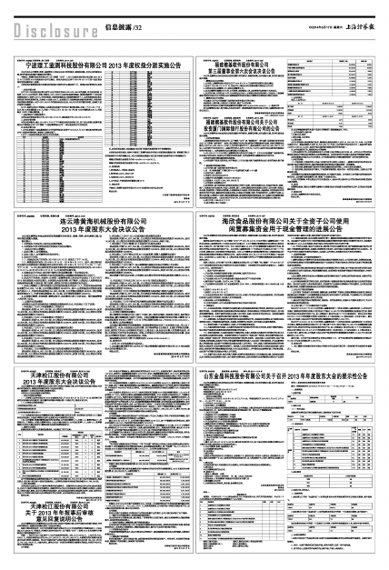 宁波理工监测科技股份有限公司2013年度权益分派实施公告