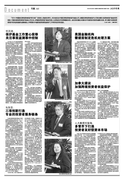 中国人民大学商法研究所所长刘俊海教授在日前召开的“2014年国际证券投资者保护研讨会”上表示,加强中小投资者保护工作,必须大力弘扬公平公正的股权文化,建立健全投资者友好型的市场准入体系、公司治理体系、行政监管体系、司法救济体系、政策法律体系、社会监督体系和投资者维权教育体系。加强中小投资者权权益保护工作是推进资本市场治理现代化的基石,是中国资本市场可持续健康发展的重要保障。
