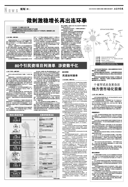□ 同日,国家发改委发布首批向社会资本开放的80个示范项目。粗略推算,总投资规模至少在几千亿元