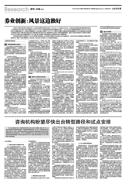 人民大学经济学院博士生导师,原中国证券业协会副会长兼秘书长马庆泉也表示,在新国九条、创新15条相继出台背景下,证券行业接下来将大步向前,而且预计未来还会有更多的政策出台支持行业的创新发展。而证券咨询机构确实存在已久,甚至早于《证券法》的出台,也是我国最早实现证券从业人员资格管理的证券经营机构。