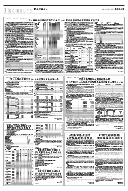 方大特钢科技股份有限公司关于2013年年报事后审核意见函回复的公告