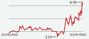 再看烯碳新材的股价,去年7月时仅4元多,如今已逾8元,几乎已经翻了1倍。以购回交易5折的比例推算,在目前的股价下,券商处置完毕股份后,银基集团将获得“大头”,实际套现金额或逾2亿元。
