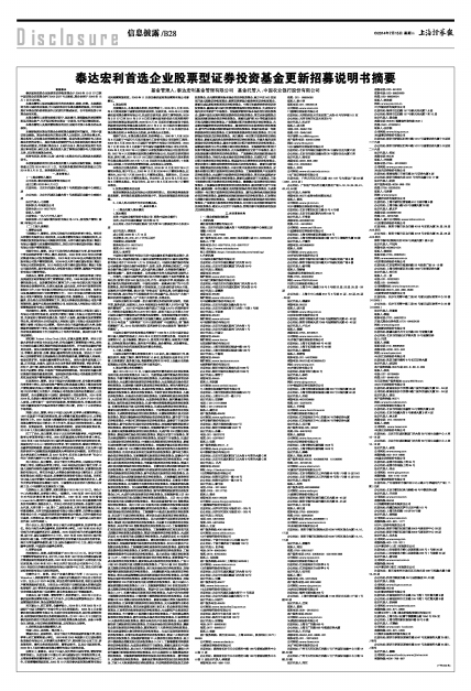 泰达宏利首选企业股票型证券投资基金更新招募说明书摘要