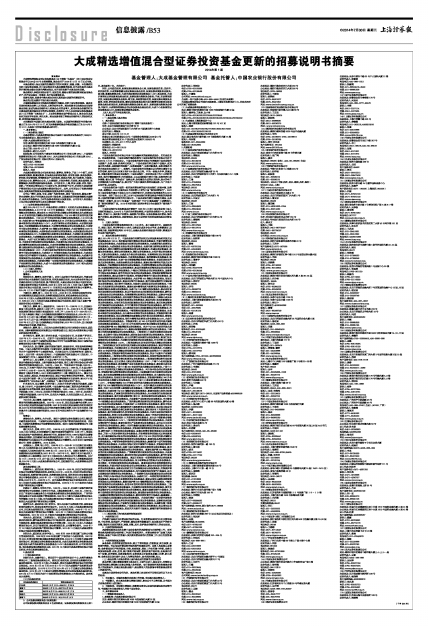大成精选增值混合型证券投资基金更新的招募说明书摘要