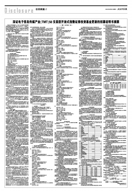 深证电子信息传媒产业(TMT)50交易型开放式指数证券投资基金更新的招募说明书摘要