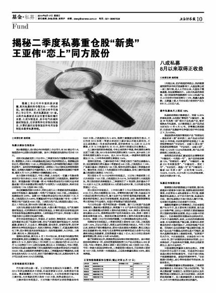 揭秘二季度私募重仓股“新贵” 王亚伟“恋上”同方股份