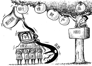第三方理财平台“钱先生”推出的1元起购银行理财产品,最近受到热捧。“钱先生”用跨行团购模式打破了银行理财产品投资门槛高、异地无法购买的软肋,成为投资者和银行之间的二道贩子。由于缺乏监管,存在资金流向、用途不明、委托代购涉嫌违规等问题,风险巨大。 漫画 刘道伟