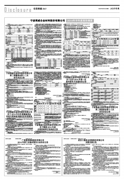 1、通过了《宁波博威合金材料股份有限公司2014年半年度报告全文及其摘要》;
