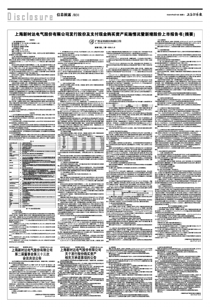 上海新时达电气股份有限公司发行股份及支付现金购买资产实施情况暨新增股份上市报告书(摘要)