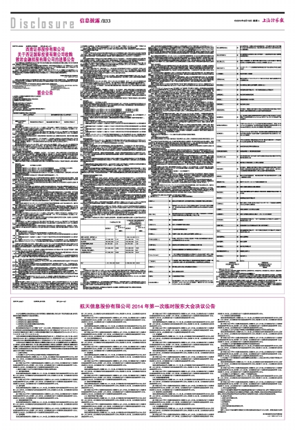 航天信息股份有限公司2014年第一次临时股东大会决议公告
